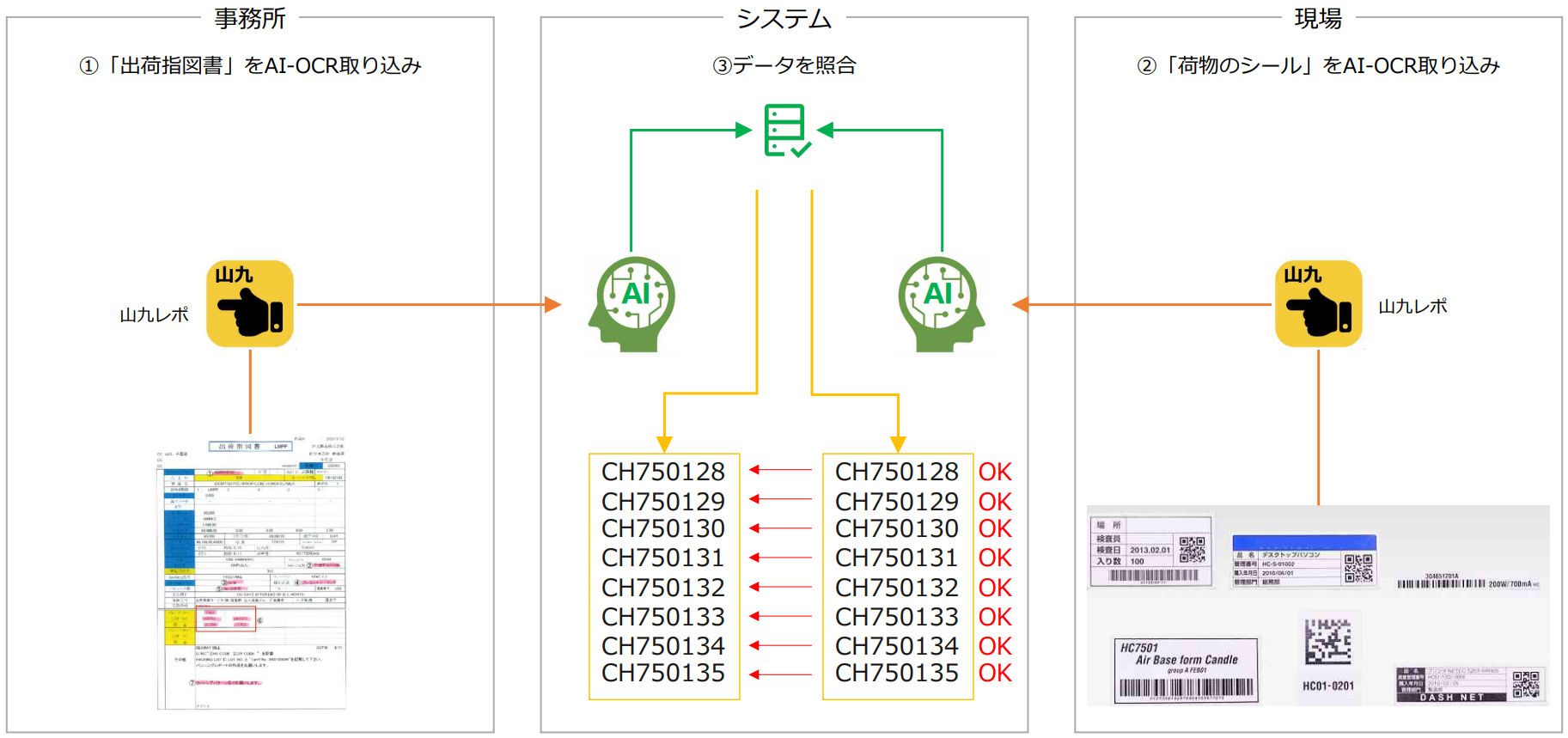 ・入庫も出荷も、伝票と貨物の数量を確認する作業を、人が目で見て判断している。(しかも、倉庫によって使用している作業票がバラバラ)